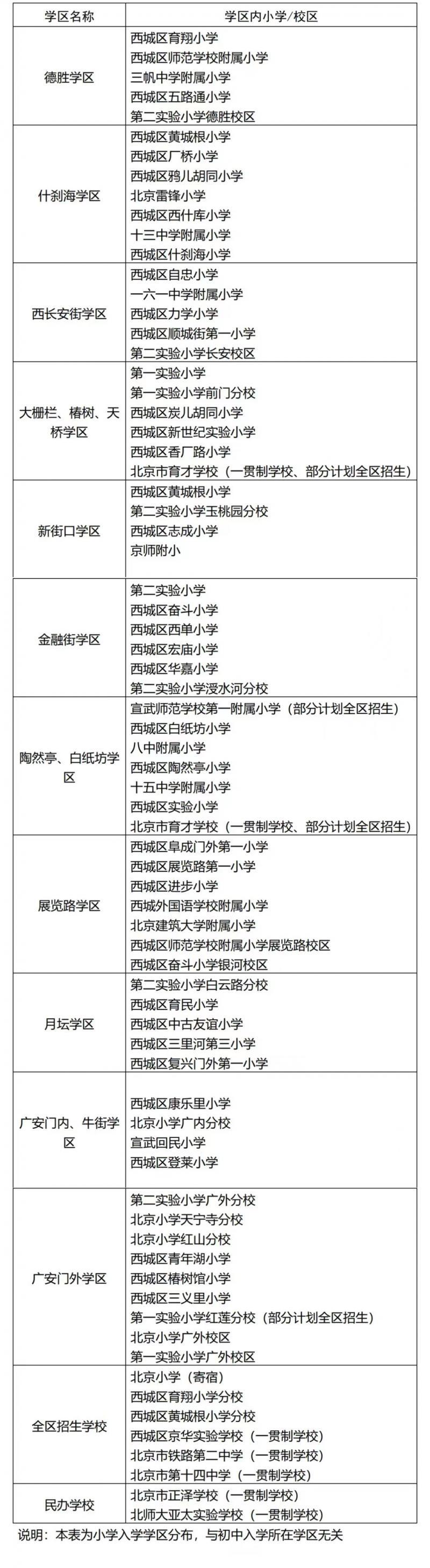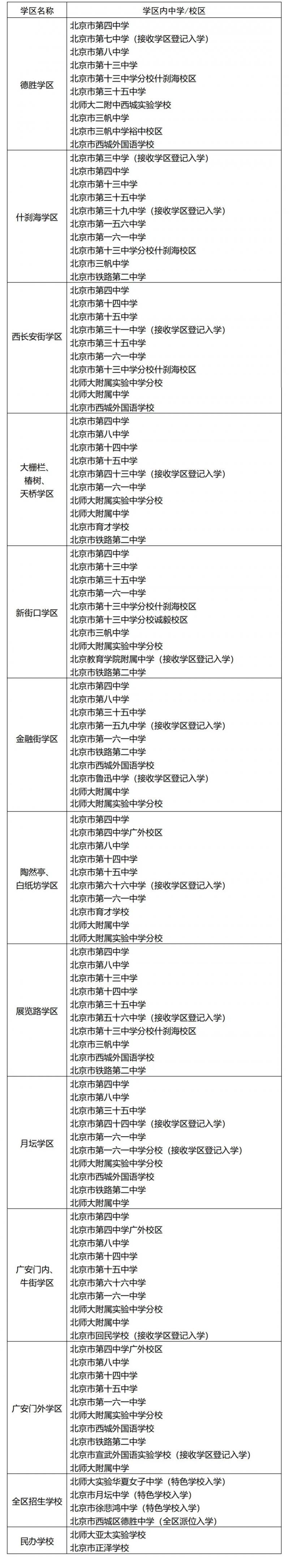 申请在西城区升初中的小学毕业生,可通过西城考试中心发布的《义务教育阶段学区初中一览表》了解学区学校布局,按西城区入学方式和程序完成入学。