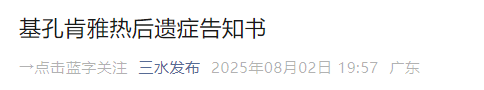 8月2日晚,佛山三水发布基孔肯雅热后遗症告知书: