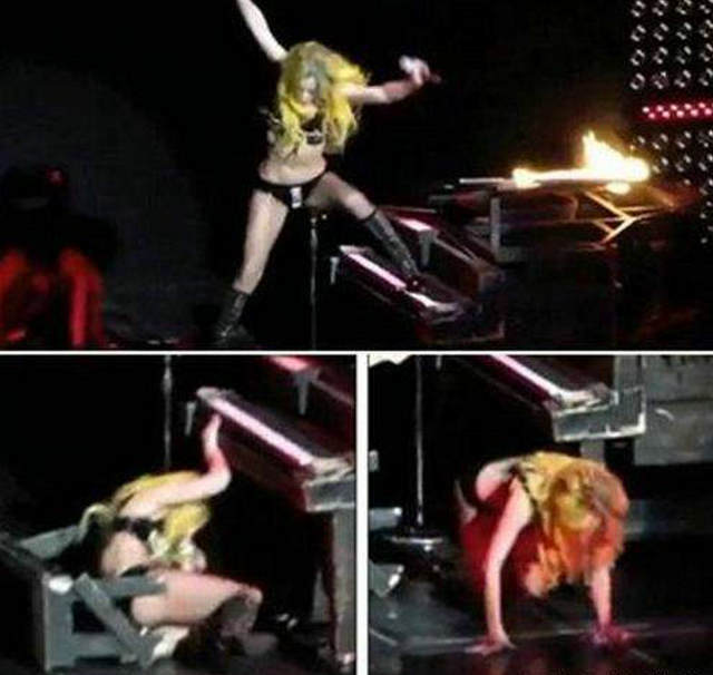 Lady Gaga曾经就在一次演唱会上从舞台上失足摔倒,让人看得都觉得一定特别疼,还好受伤没那么严重,停顿了一会儿之后立刻继续表演了。