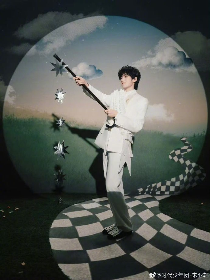 #宋亚轩新歌概念照发布##宋亚轩白西装魔法师造型##宋亚轩星芒权杖概念照# @时代少年团-宋亚轩 新歌《无趣生活指南》概念照惊喜释出,置身星月棋盘场景中,白西装干净利落,星芒权杖点缀造型,精致又有童话感,颜值状态超亮眼!