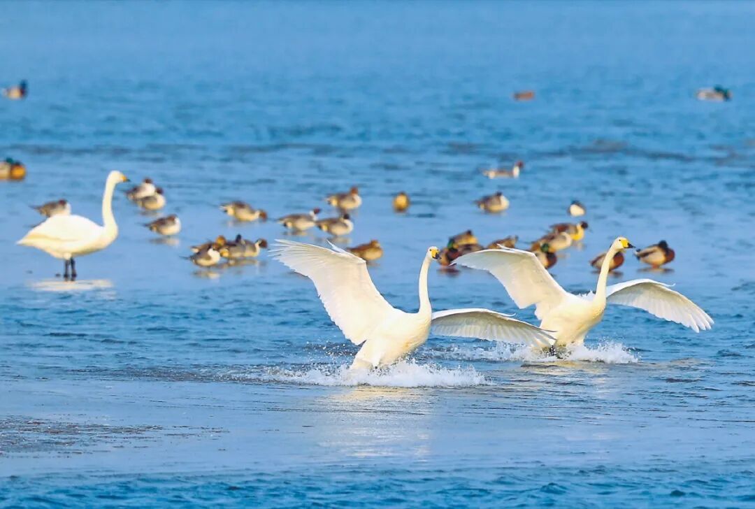 大批迁徙鸟类万鸟齐飞的场面,冬日限定“奇观”每日都在这片水域上演,是冬季观鸟拍鸟的绝佳去处。