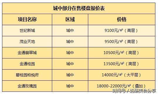 城中片区楼盘报价: