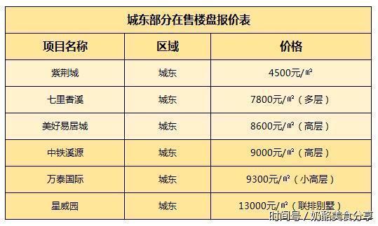 城东片区楼盘报价: