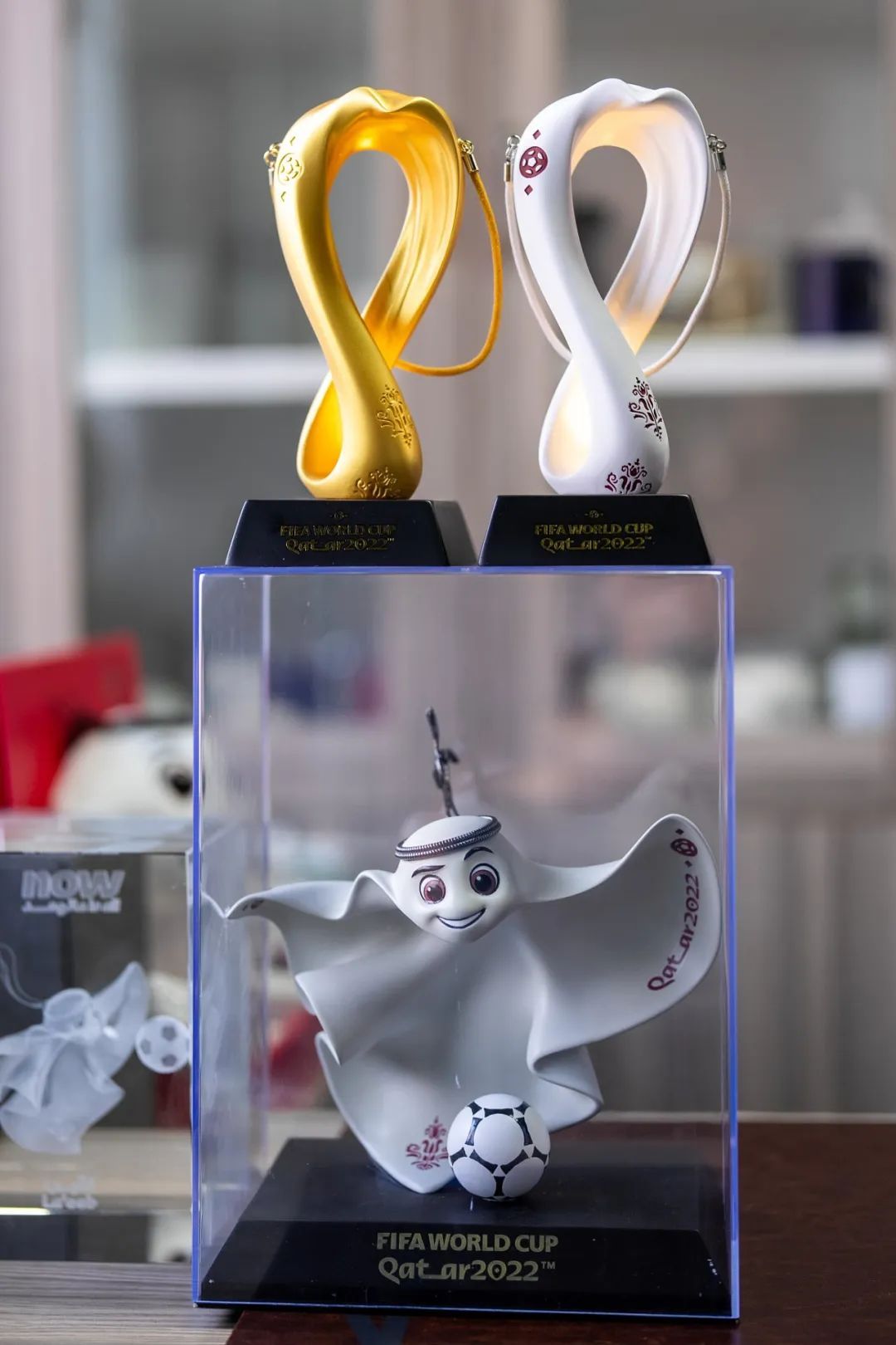 作为卡塔尔世界杯组委会的供应商之一,陈雷刚所在的厂商还负责设计和生产吉祥物帽子、3D水晶钥匙扣、手办、奖杯复制品以及树脂灯等官方纪念品。