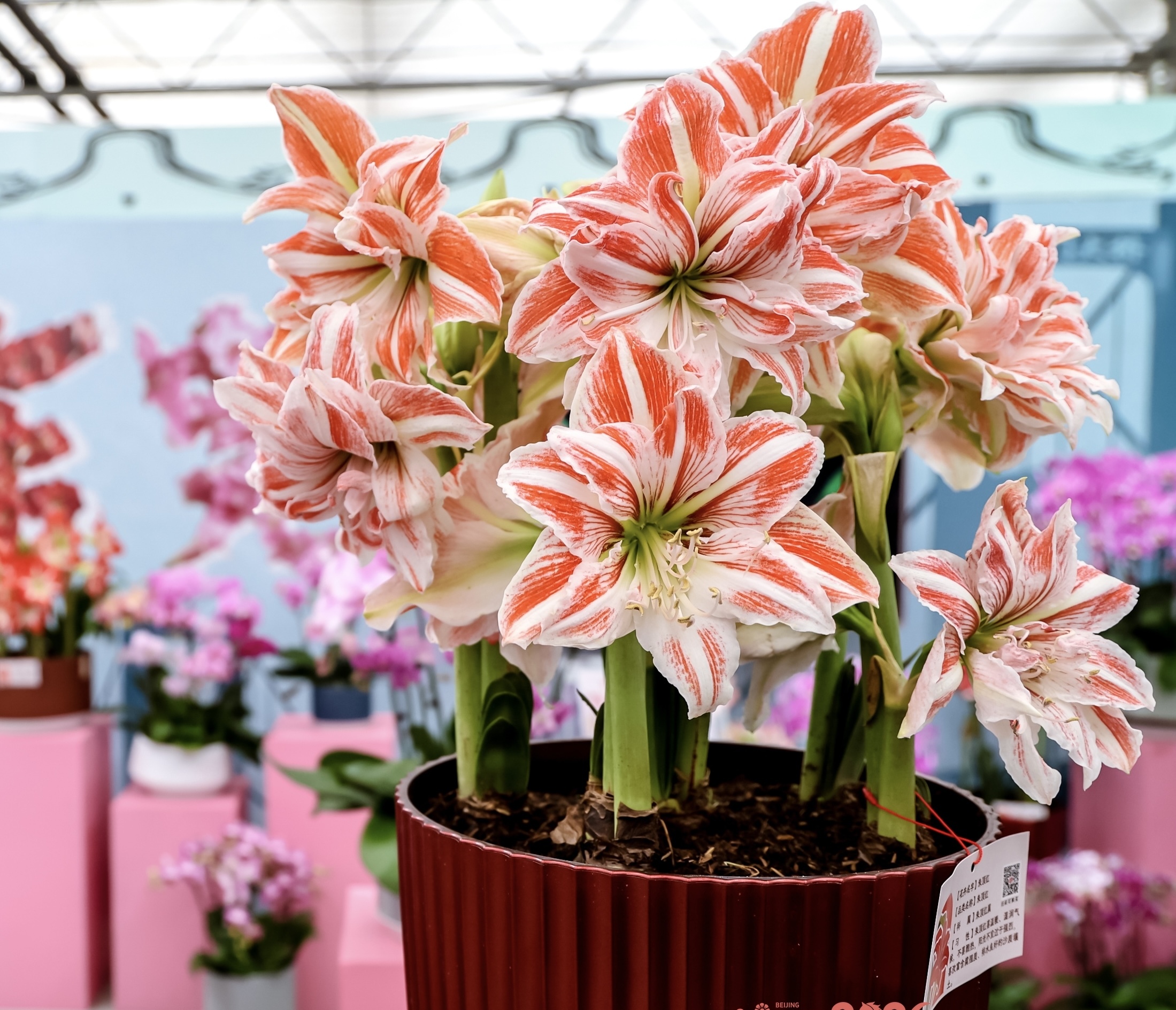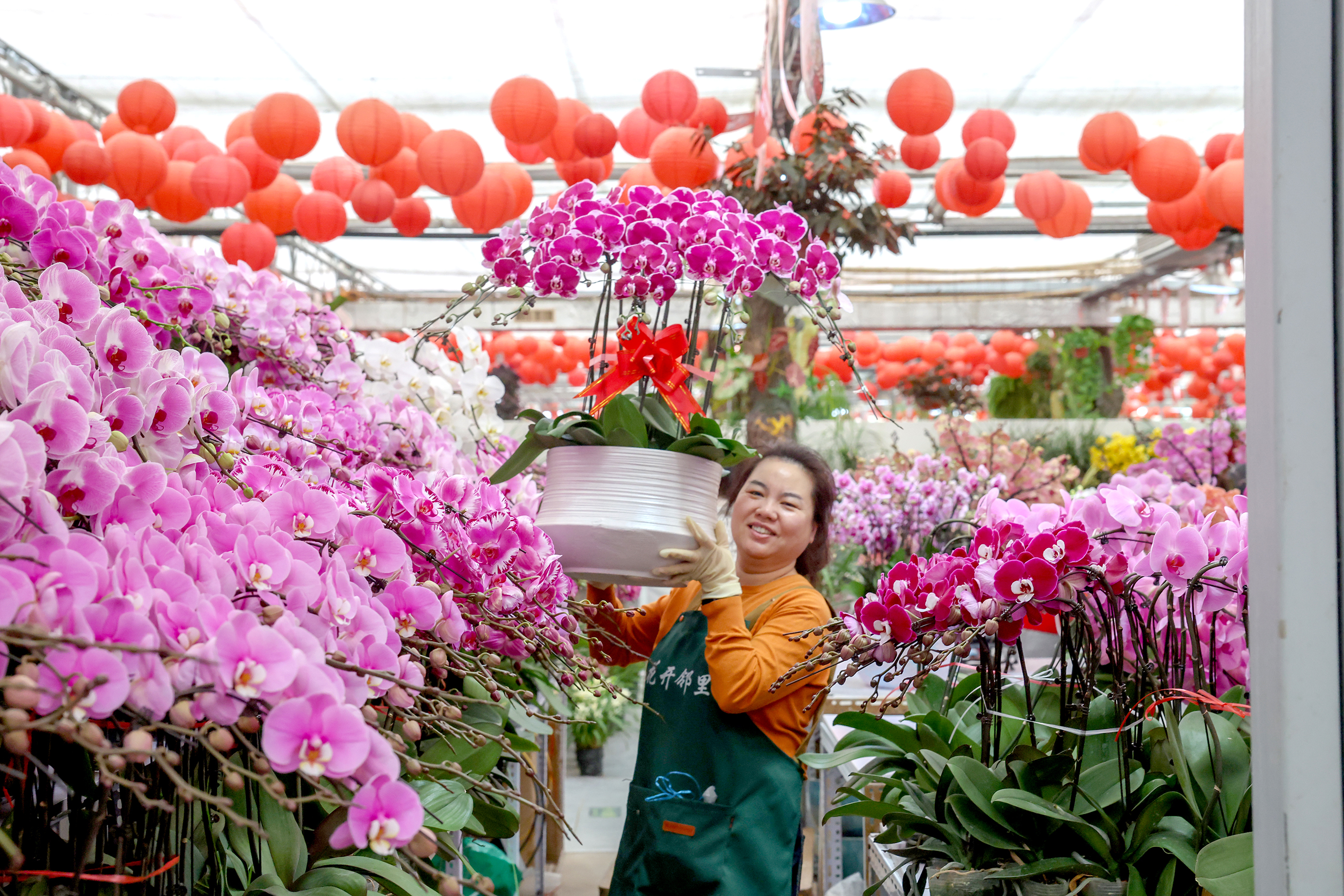 北京花卉交易中心的C展厅很是热闹,这里迎来了很多陌生面孔——他们来自山东菏泽、贵州黔西南州、广东东莞、福建龙岩等地,带来了当地的年宵名花参加展销。