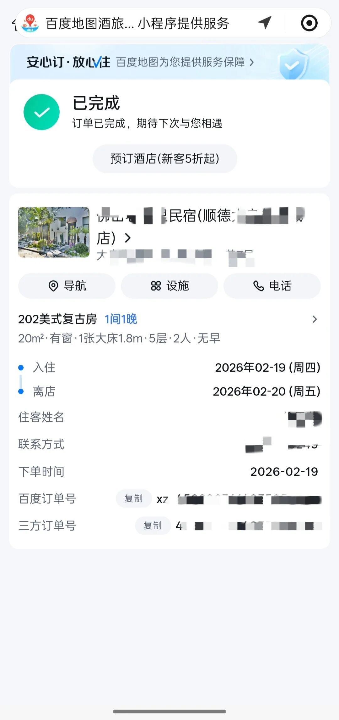 据李女士讲述,春节假期,她规划了从辽宁沈阳到广东佛山的旅行,提前一天通过百度地图成功预订了佛山当地一家民宿。可当她经过一路奔波满心期待办理入住时,却被民宿工作人员告知房间已满,无法安排入住。回忆起当晚沟通的艰难过程,李女士的语气里满是委屈与气愤。