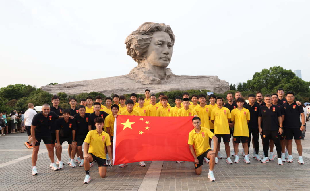 U23国足在橘子洲头留影