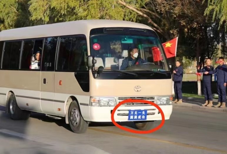 航天员乘组乘坐的专车上,这个车牌亮了......