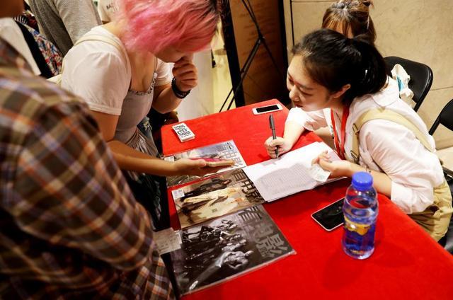 ▲比如这位粉头发公主裙正在签到的洛丽塔系妹子就是ACG方队代表~