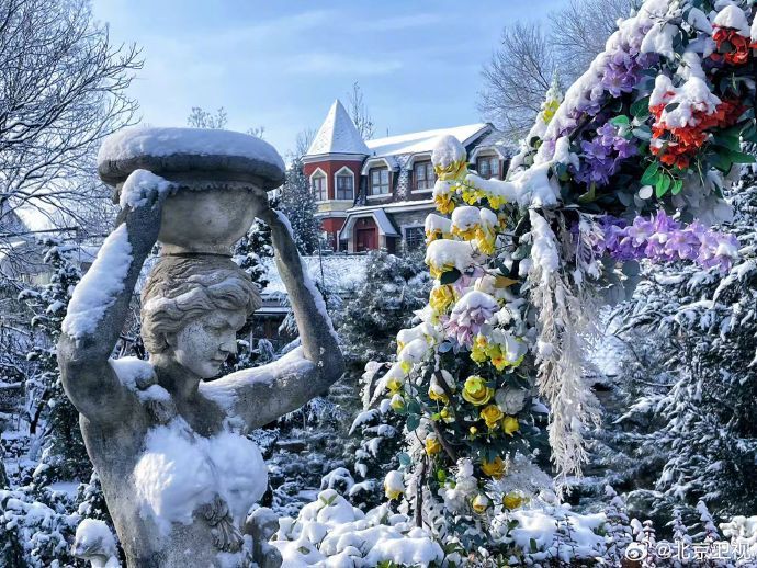 今冬瑞雪初临天毓山庄,欧式风情的建筑与白雪撞个满怀,漫步其间仿佛闯入童话世界,这份冬日限定的美好,邀你共赴踏雪迎春之约~#北京原来可以这么美#