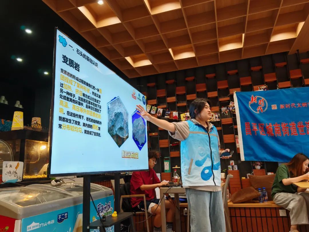 活动现场,中国石油大学的志愿者化身“石头魔法师”,开启了一场60分钟的沉浸式科普课。从火山喷发冷却的火成岩、层层堆积的沉积岩,到高温重塑的变质岩,志愿者用生动的图片、短视频和趣味案例,揭开了石头三大“家族”的身世之谜。小朋友们听得眼睛都直了,原来铅笔芯和钻石竟是“近亲”,普通石头里还藏着地球46亿年的时光密码!