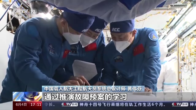中国载人航天工程航天员系统总设计师 黄伟芬:随着空间站的建成,这个组合体越来越复杂,出问题的概率就增加。通过推演故障预案的学习、实操的训练和演练,然后对应急故障这一方面的故障处置能力进行了强化的训练,就是一旦在出现这些紧急应急的工况的时候,他能够沉着冷静有效地进行处置。
