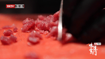 皮儿如此讲究,馅儿更有门道。贾钰坤调馅儿,要用手切的后腿肉,而且不能切的太碎,每一粒羊肉都要黄豆大小,这样做出来的烧麦馅儿刚刚好,既不会太老,又能吃得到肉感。
