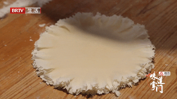 在他的心里,烧麦不能只有褶子,还得有小碎花。这样的小碎花效果只有人工擀皮才能出现,因为这比机制皮多了一个工序,那就是擀完之后,还要砸,砸出这花边。这样自然是费时费力,每天店里有三四个师傅专门负责做烧麦皮。坚持传统手艺、现擀现做,这是贾钰坤做烧麦的态度。