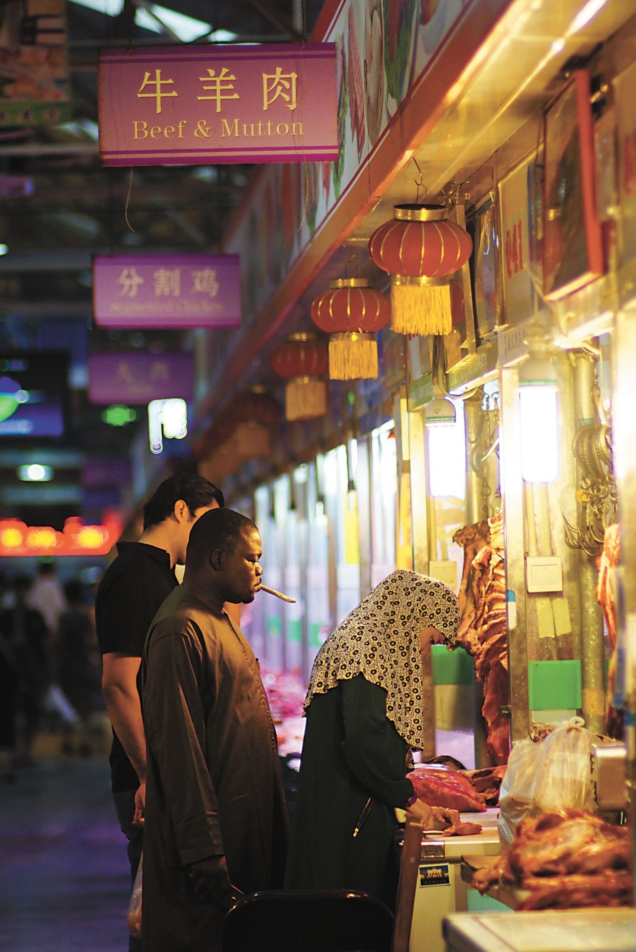 近日,《中国产经新闻》记者走访了三源里市场,看到许多外国人在采购生鲜产品,商户可以用简单的英语与客人交流。有水果商户表示,生意最好时候,一天的销售额能上万元。