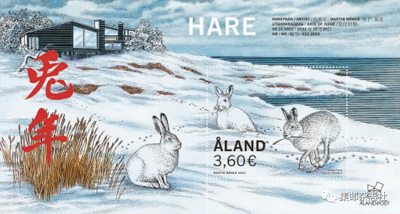 2022年10月20日,芬属奥兰群岛发行“兔年”邮票小型张一枚。面值3.60欧元,由马丁·莫克设计。图案为雪兔。