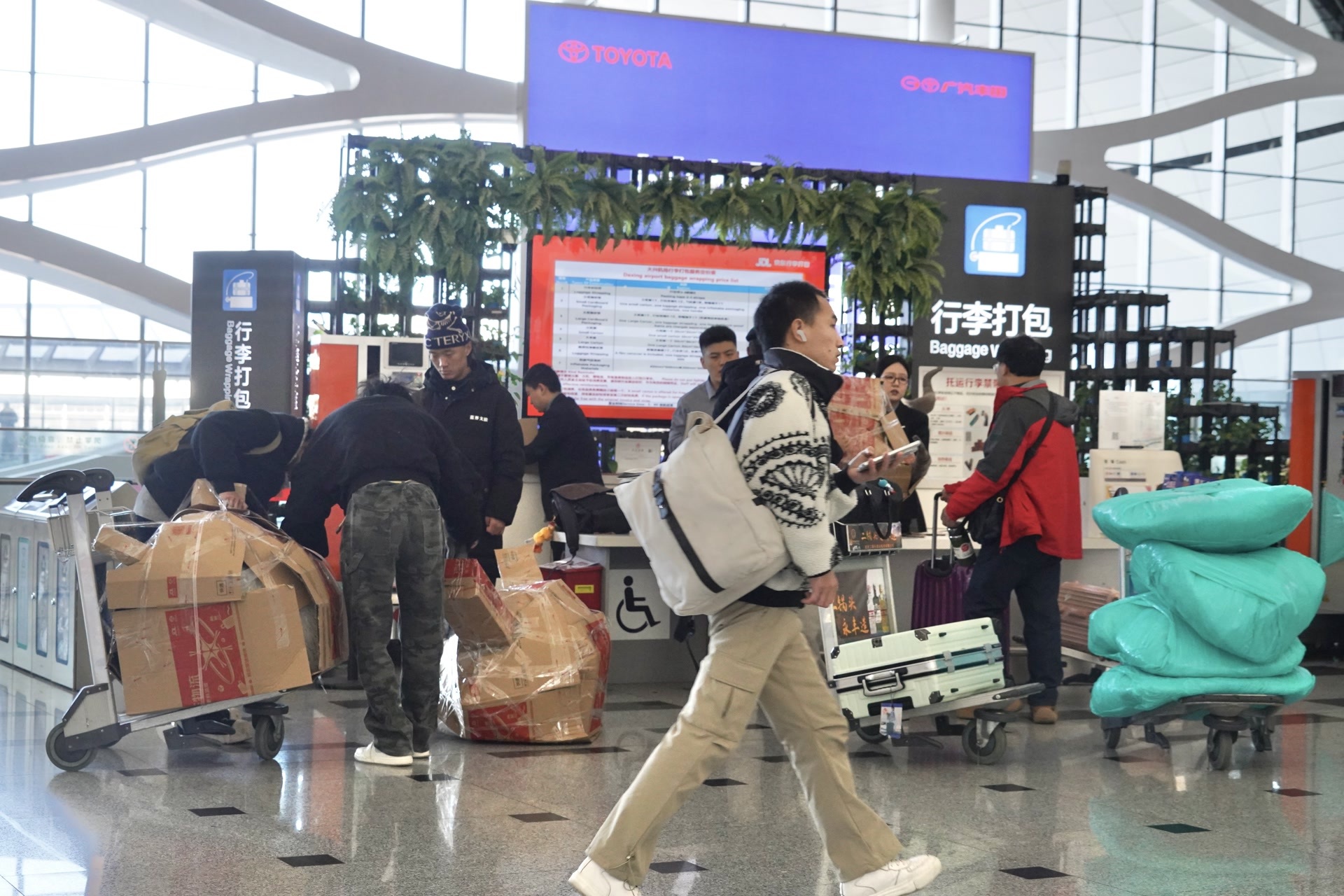 还需要再次提醒的是,从去年6月起,旅客禁止携带没有3C标识、3C标识不清晰、被召回型号或批次的充电宝乘坐境内航班。旅客搭乘航班回乡之前,还需留意自己的充电宝是否符合相关规定,避免造成财物损失。同时,请注意行李物品是否符合乘机相关规定,避免携带“三超”行李,出入境旅客请提前了解目的地入境政策,备好所需证明材料。如需了解更多信息,可拨打机场服务热线96158,或通过大兴机场官网、APP、小程序等线上平台查询。