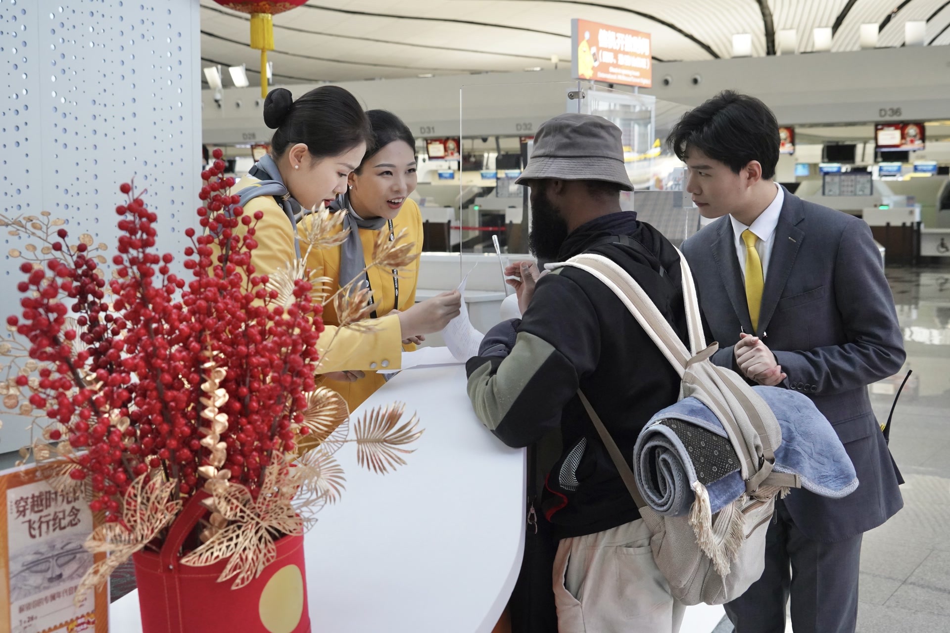 春节前后,大兴机场开展“兴兴陪你过大年”主题活动,并联合首都博物馆在E指廊国际出发区推出“北京史·国潮”主题展,通过四个展区、二十三件展品展现首都文化脉络,还将与首都图书馆合作举办元宵喜乐会、猜灯谜活动。此外,“归兴肆见”新春市集、“加马过大年”快闪即将启动,现场设置祈福挂牌、集章打卡等互动环节,在D60登机口打造“春运回家”主题登机口,将春节氛围沉浸式延伸至旅客动线之中,让春运旅途充满温情记忆。