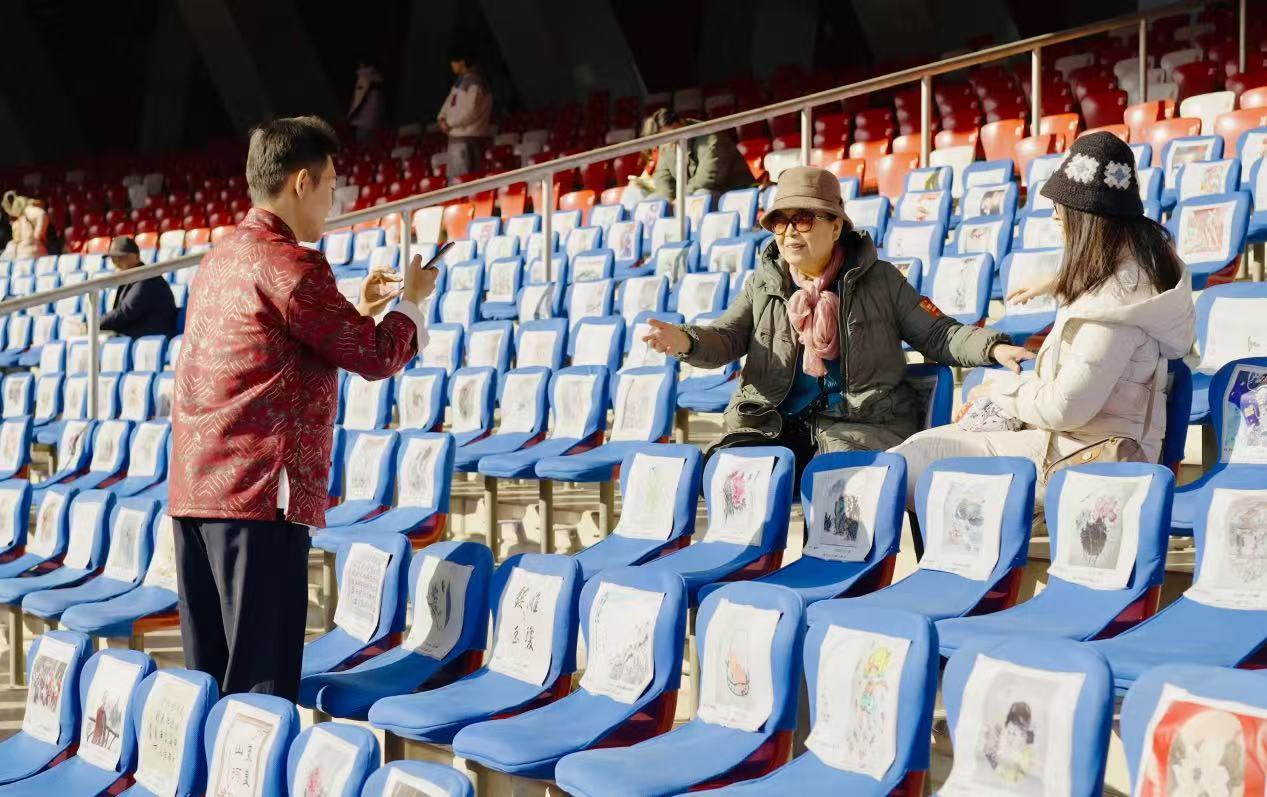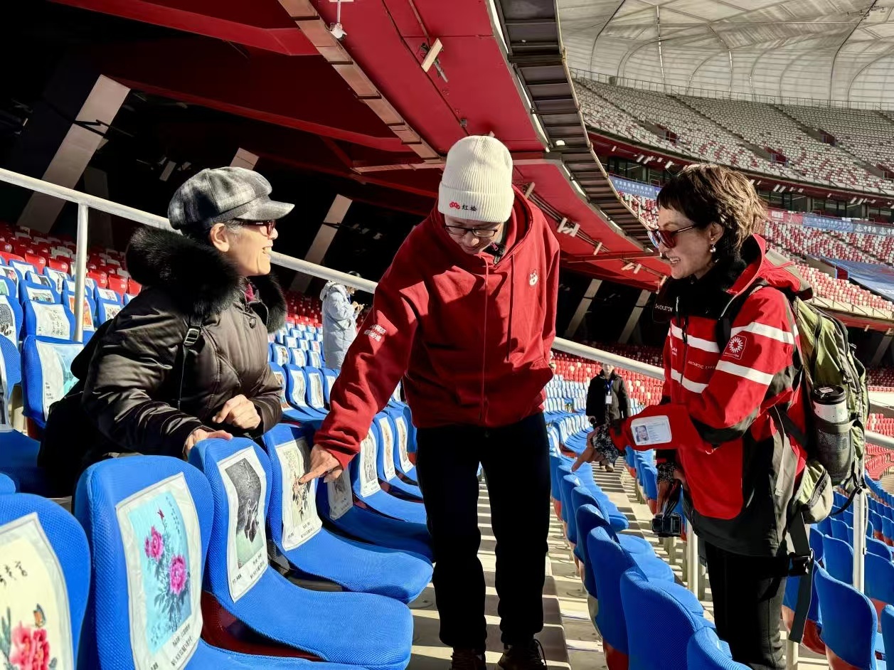 值得一提的是,此次艺术展还吸引了众多跨城而来的中老年艺术爱好者。52岁的杨玉秀便是其中之一,春节前,她不远千里从家乡哈尔滨乘坐火车赶到北京,只为亲眼见证自己的书法作品在鸟巢展出。杨玉秀表示,自己一直热爱书法,能够参与此次“鸟巢杯”双奥座椅艺术展,让她倍感荣幸与自豪。