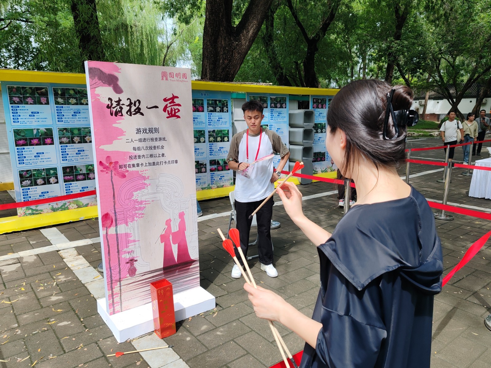七夕当日,园内春泽斋将举办七夕主题演出,并设置投壶(情投一“壶”)、钟表几点了(“指”子之手)、踢毽子(遇“毽”幸福)、蹴鞠(因缘相“鞠”)、抽签(“签”作之合)、七夕大富翁(“掷”爱一生)6个“美好寓意”的古风游戏。游客参与游戏互动,即有机会获得精美礼品。此外,园内还设置了“爱情邮筒”“COS巡游”等独具七夕特色的文化体验活动。