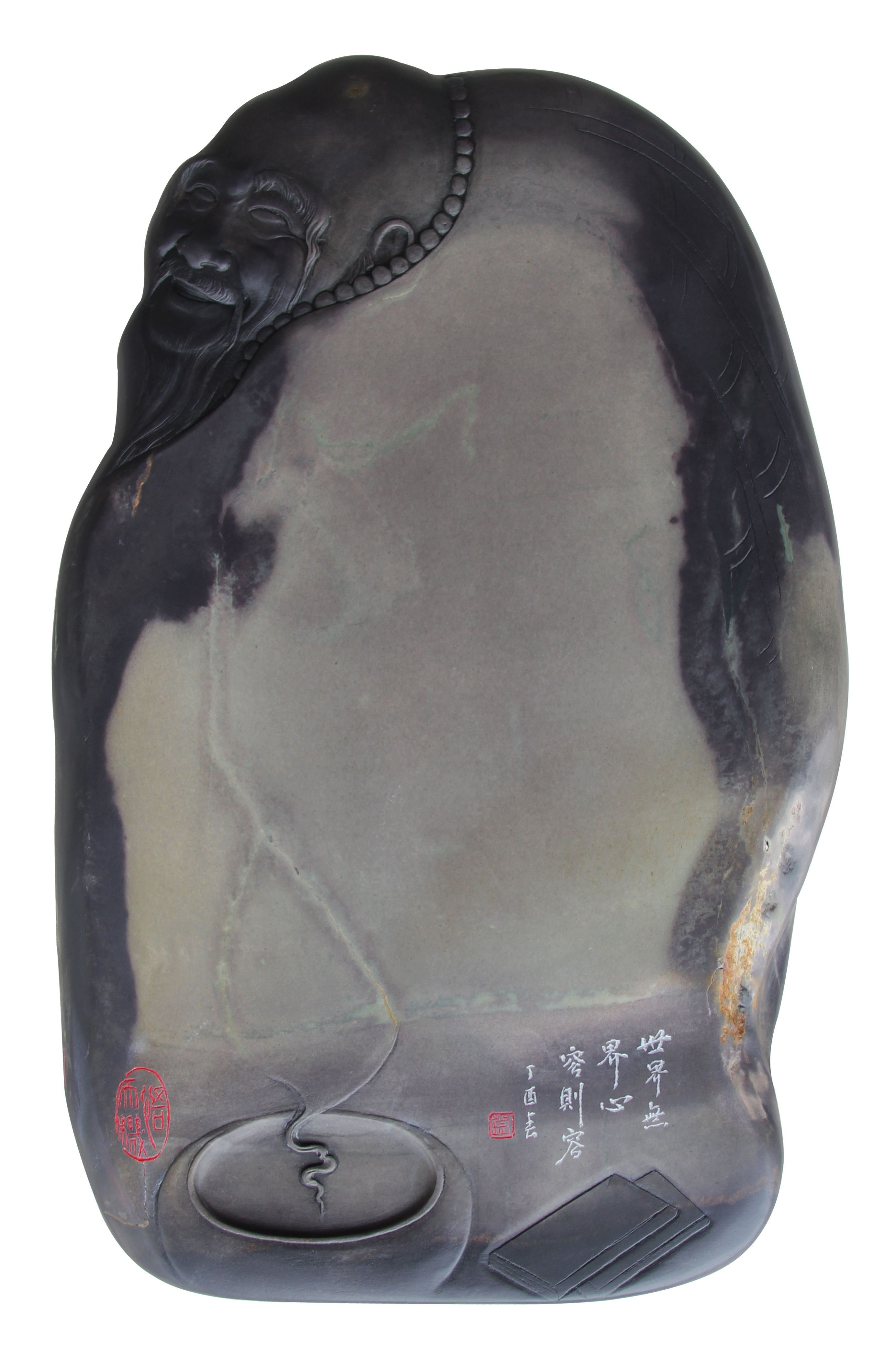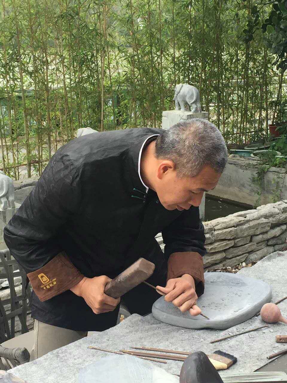 “路漫漫其修远兮,吾将上下而求索”。艺术无止境,贵在执着与坚持,敢于超越前人,在不断否定自己中前进,在不断的跨越中升华,这才是艺术的正道。”他说:在我近三十年的工艺雕刻创作之路中,一路做到“传承与创新”,既保留了传统工艺技法,又突破了原有砚雕的规整行制,创作出石刻技艺与意象巧然结合的砚品,每一方端砚力求做到既有视觉冲击感、又有历史文化感。我的作品注重精刀细刻、因材施艺,将中国画的写意手法娴熟地再现在砚石之上,利用独特的构思、精湛的雕刻和巧妙的刀工手法表现好的题材、好的设计,达到工意结合、浑然天成,将每块砚石的石品融入自己独特的创意,将砚石的唯一价值、欣赏价值和收藏价值结合,将每一方砚刻画成一个个美丽动人的故事。