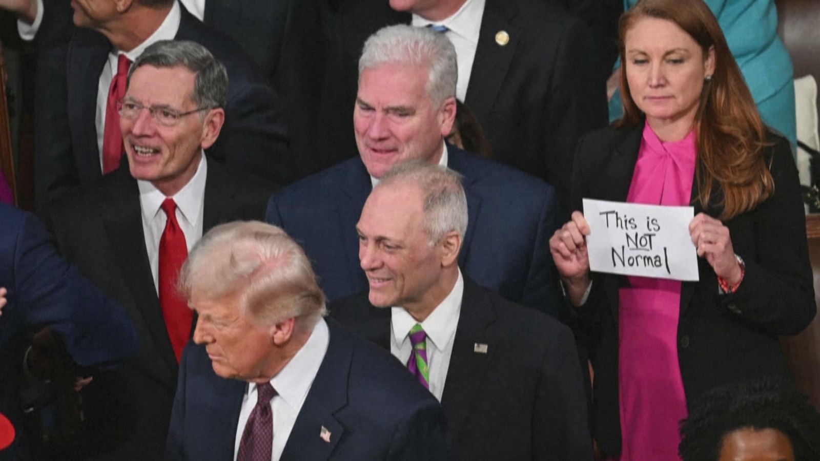 一些民主党议员毫不掩饰对特朗普的不满,高举“谎言”、“不正常”等标语以示抗议。其中,得克萨斯州众议员艾尔·格林多次高喊打断特朗普的讲话,之后被警卫带离会场。