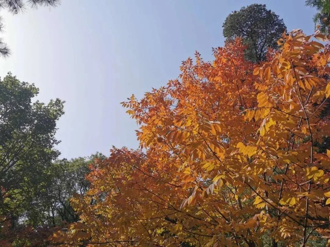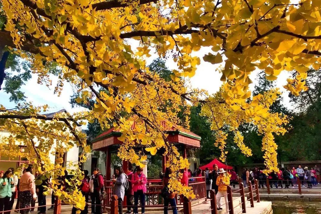 银杏生长缓慢,因此又有祖孙树的称号,叶片呈扇形,每到秋季,满树金灿。香山的银杏大多树龄较长,树形高大,树冠饱满,值得好好欣赏。