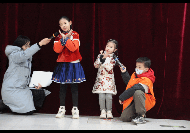 3名好少年志愿者在各自的岗位上各尽其职,活动签到、后台场务、舞台道具,他们在活动全程卖力为小演员们服务。