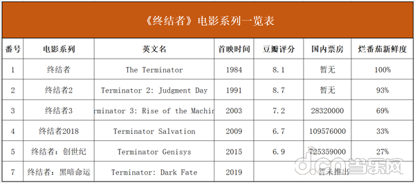 已拥有35年发展历史《终结者》系列,先后推出了7部电影作品。其中首部《终结者》已成为经典,不仅烂番茄新鲜度一直保持在100%,在国内豆瓣评分也在8分以上。这为后续电影的推出奠定了长效知名度效应以及数量庞大的粉丝人群。而7部电影的持续推出更是为该系列在不同时间段注入了不同年龄的新鲜粉丝,使IP在时间的荒野中后续生命力越来越强大,价值也越来越高。比如2003年推出的《终结者3》国内票房为2832万元,而到2015年《终结者:创世纪》其国内票房已创下7.2亿元记录。
