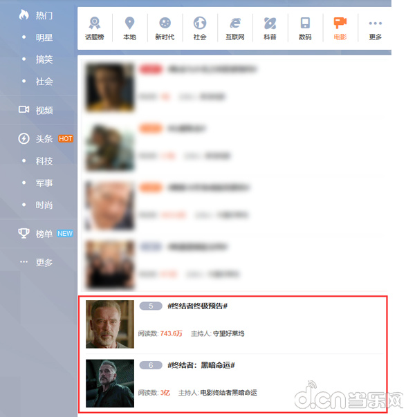 目前在新浪微博,关于《终结者:黑暗命运》的热门话题,#终结者:黑暗命运#其阅读数已超过3亿;#终结者终极预告#阅读数位743.6万。且随着电影的首映时间越来越靠近,话题阅读数还在不断增加中。这意味着:在微博关注电影的粉丝越来越多,人气也将持续走高。