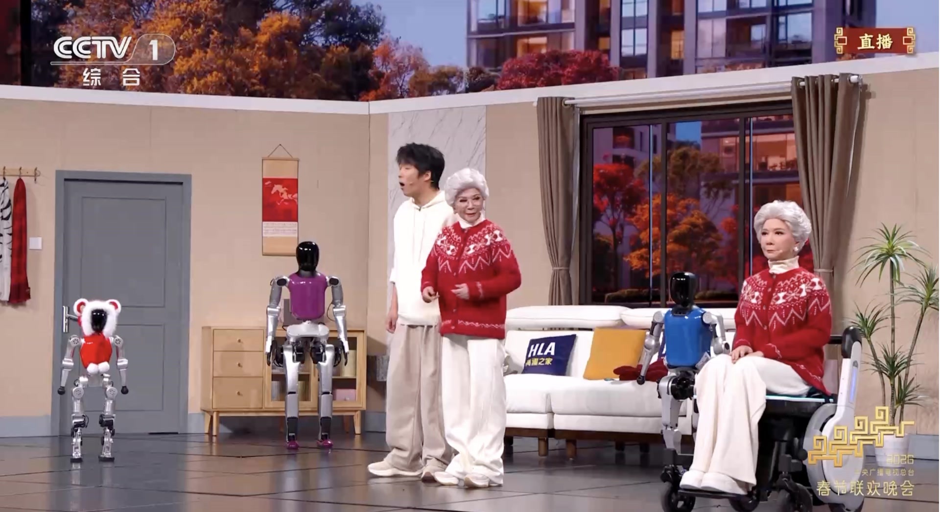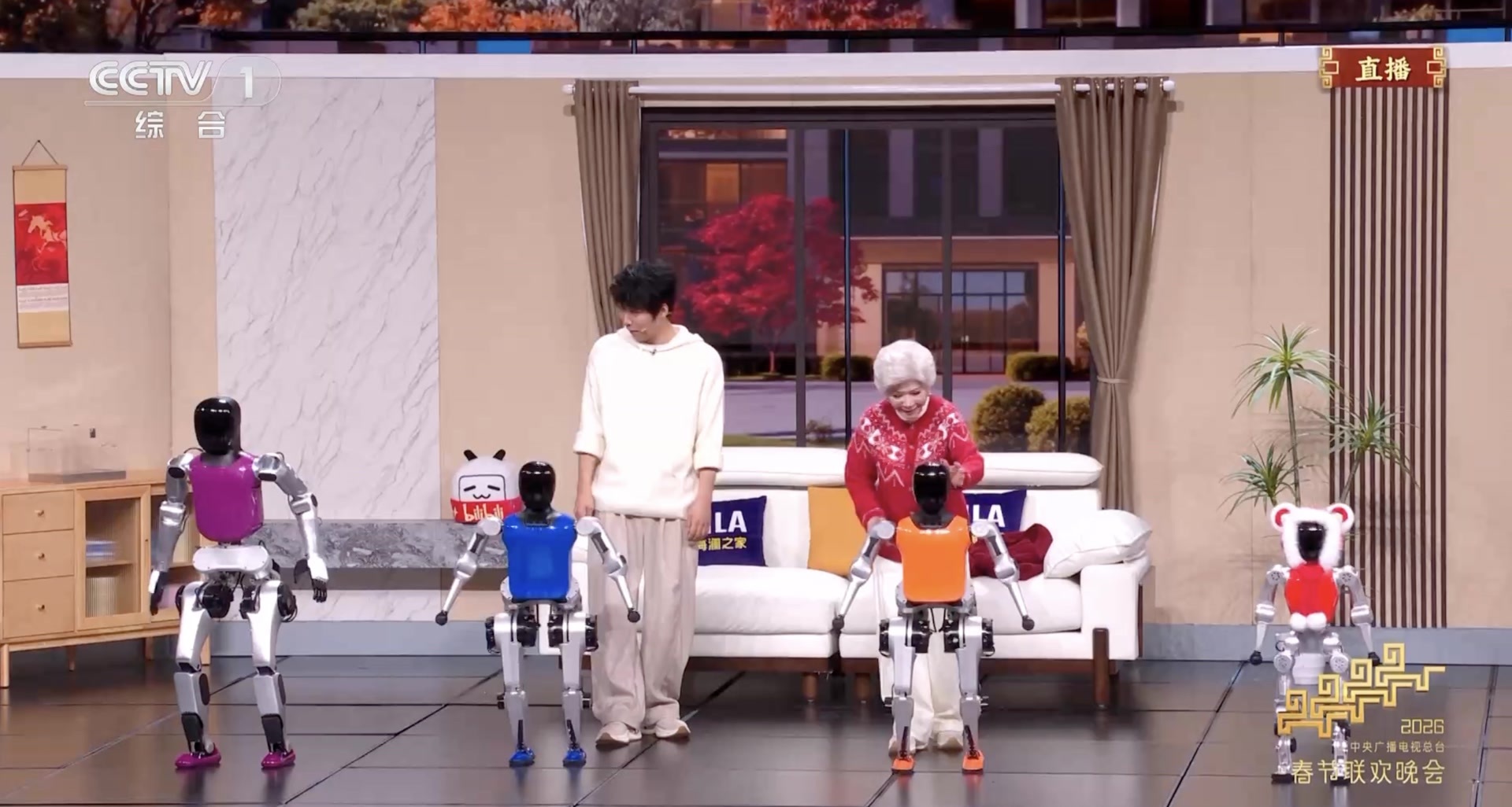 与“仿生奶奶”同台出圈的,还有那群身怀绝技的人形机器人。舞台上,它们行云流水地完成后空翻、侧手翻等高难度动作,落地时稳如泰山,并与真人演员默契互动。