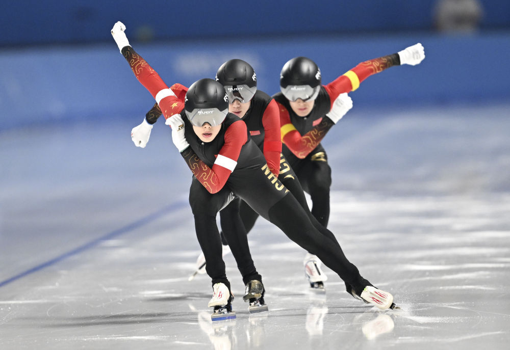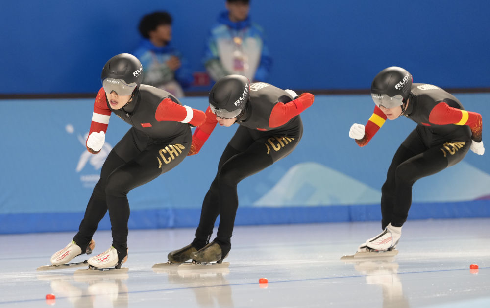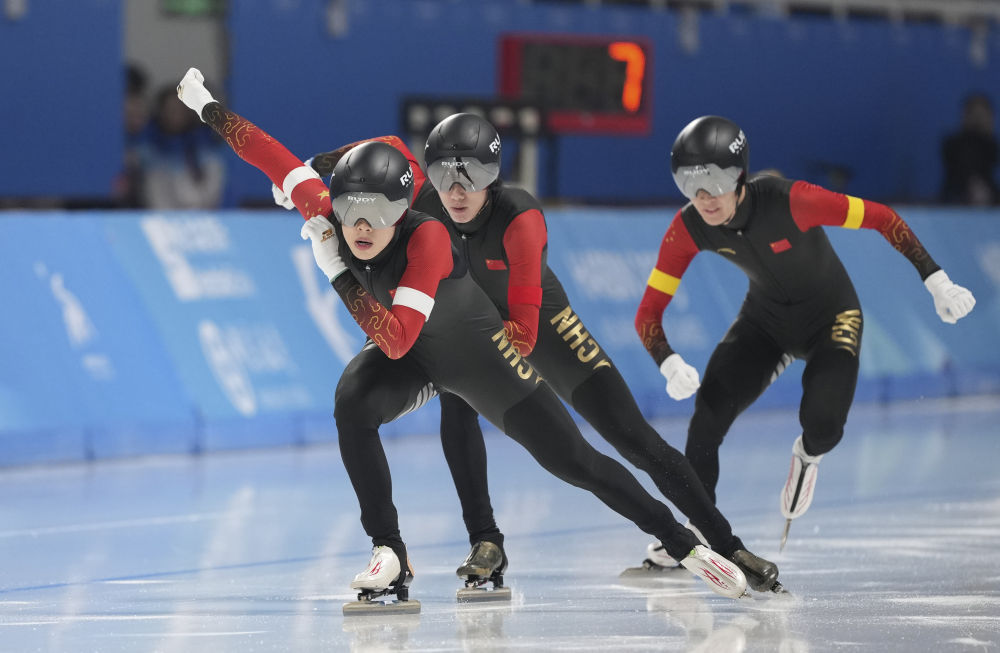 2月11日,哈尔滨亚冬会速度滑冰男子团体追逐决赛,由刘瀚彬、吴宇、哈那哈提·木哈买提组成的中国队夺得金牌。