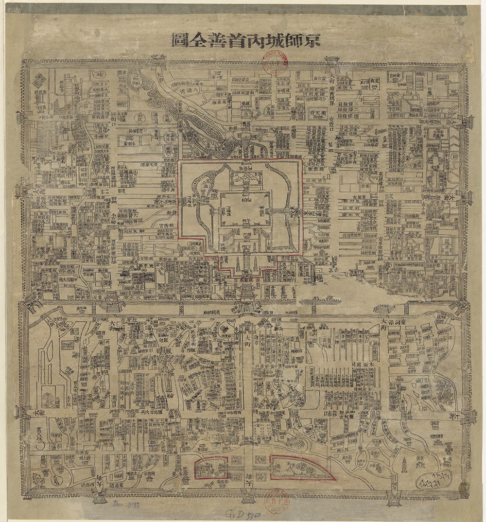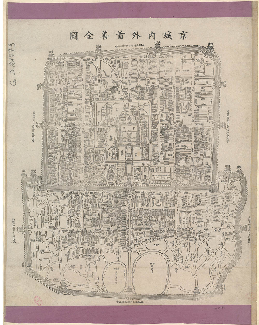 京城全图:这副手绘地图,作者和年代不详,但是根据其中的地名林清宫大致推断为清嘉庆时期。