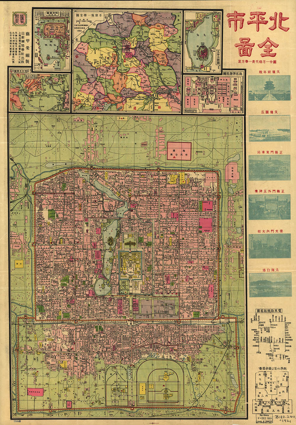 北平市内外城分区地图: 安仙生编绘,民国二十二(1936)五月出版。