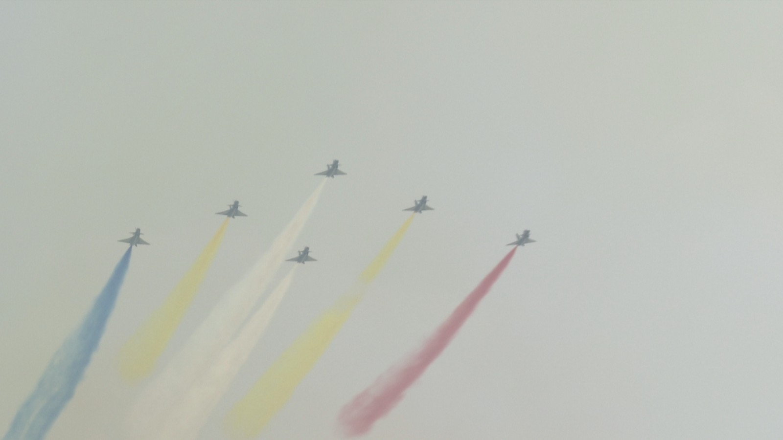 在下午召开的新闻发布会上,曹振表示,此次中国空军八一飞行表演队,一共出动歼10表演机7架。在人员准备上,都是精心遴选技术精湛、经验丰富的表演队员,所有任务飞行人员都有多次执行国内外演阅活动的经历。表演动作编排上,突出了编队的协调性和动作一致性。表演队准备充分,针对不同的气象条件,设计了4套表演方案,以保证在多种气象条件下进行表演。