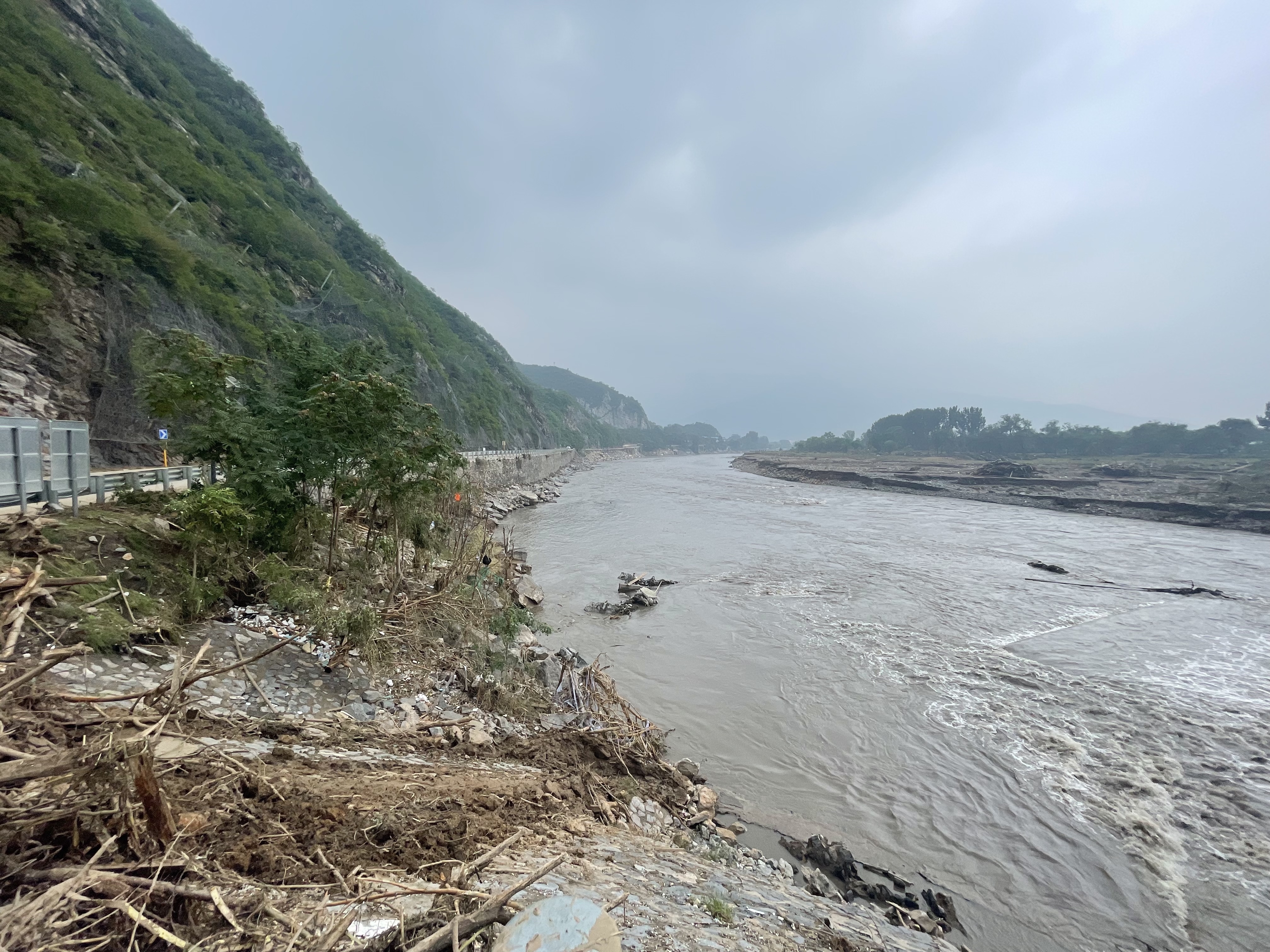 109国道门头沟段全长96.85公里,双向两车道,路面平均宽7米,是进入门头沟清水、斋堂、雁翅等深山区的主通道。此次洪灾过后,道路损毁相当严重。据目前道路打通的情况统计,已出现10处塌方、水毁5处、道路塌陷1处。