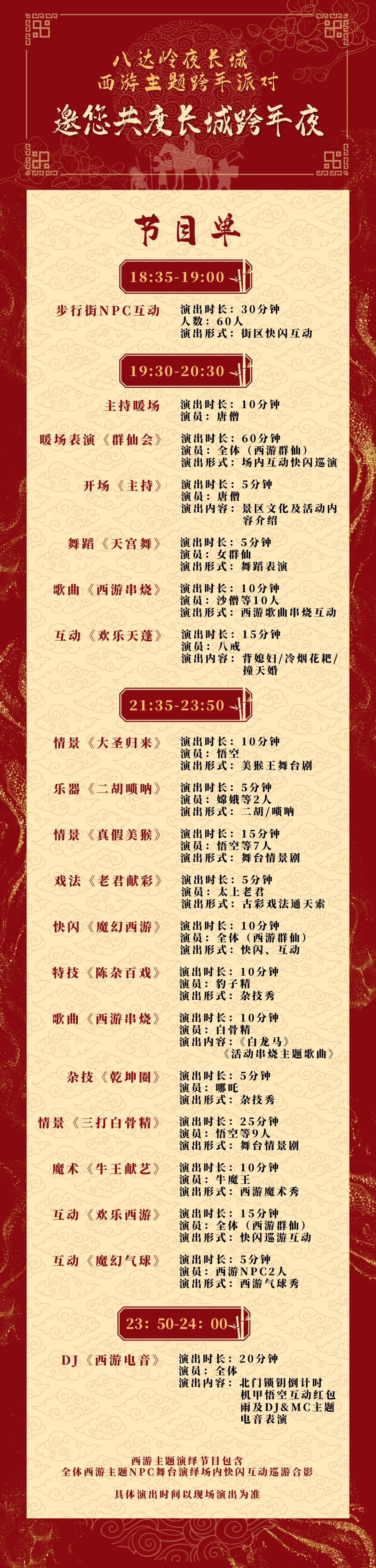 主题玩法超吸睛:西游主题跨年+长城登高祈福,新年氛围感拉满。