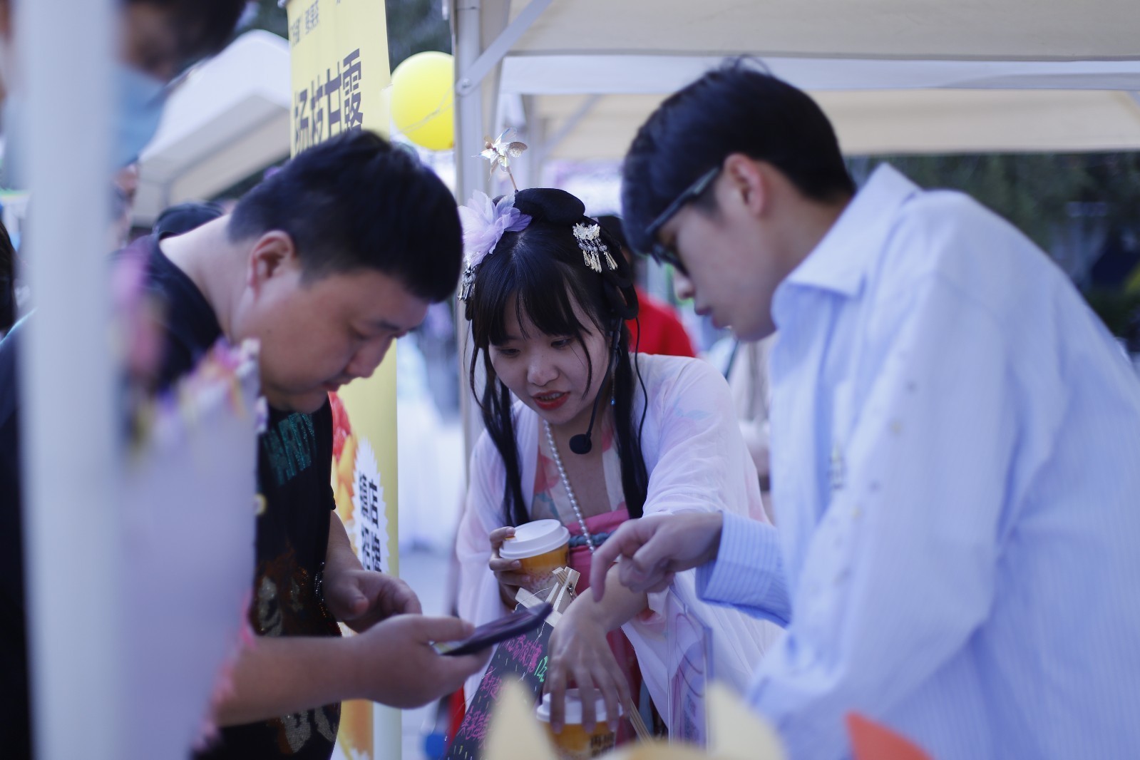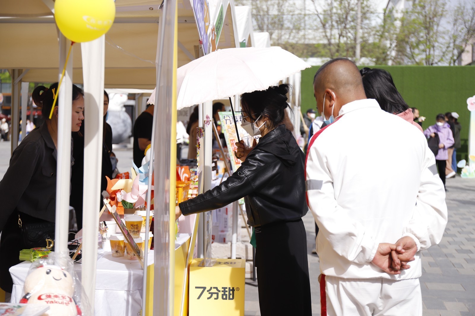 除二手摊位外,市集特别邀请到联合利华、盒马鲜生等20余个品牌,包含春系饮品、春系美食、鲜花、生活用品等品类专属摊位,以特惠售卖形式为辖区居民、白领及游人提供便捷、优惠购物服务。