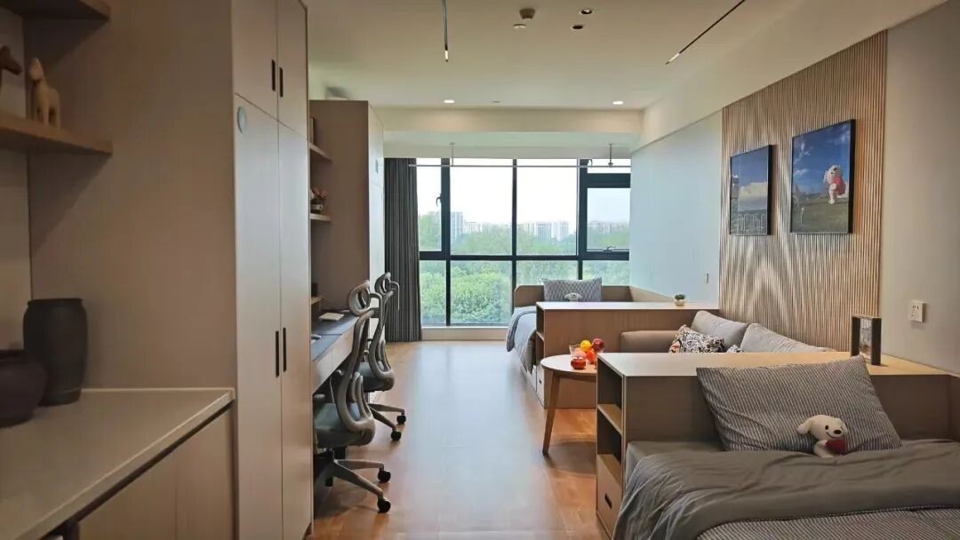 该项目建筑面积约2.7万平方米,共3栋公寓楼,单套面积介于25.8至49.7平方米之间,家电家居一应俱全,京东实习生可免费申请、“拎包入住”。项目依托经开区“存量改建纳保”政策优势,实现了土地资源高效利用与住房保障功能的有机结合。