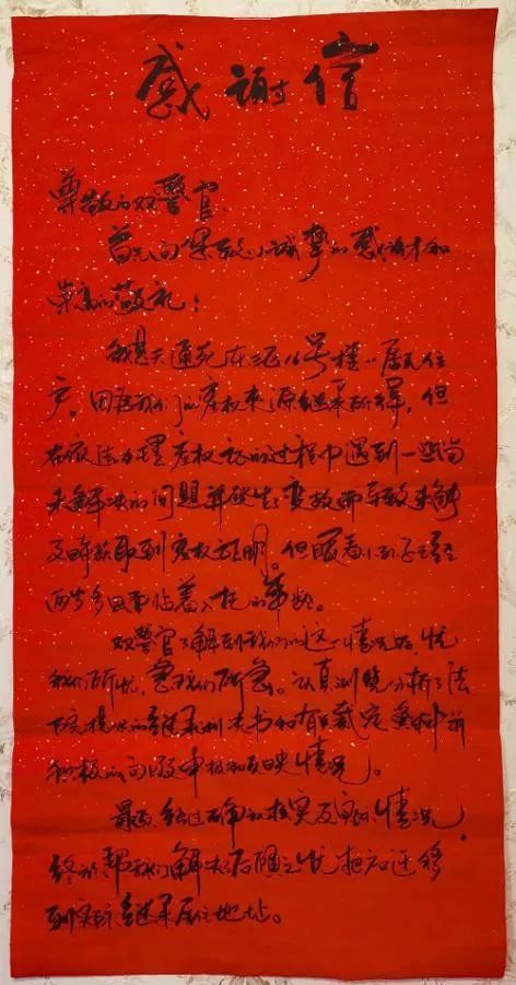 十年郁结,一朝化解。老人在感谢信中写道“在双鹏警官身上,我着实感到了党和政府为百姓办事、办好事、办实事的实际行动。这是一种久违的温暖”。从老人热情洋溢的感谢信中,双鹏也感到了激励和鞭策。