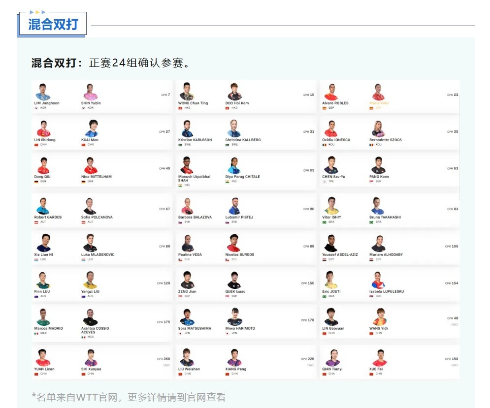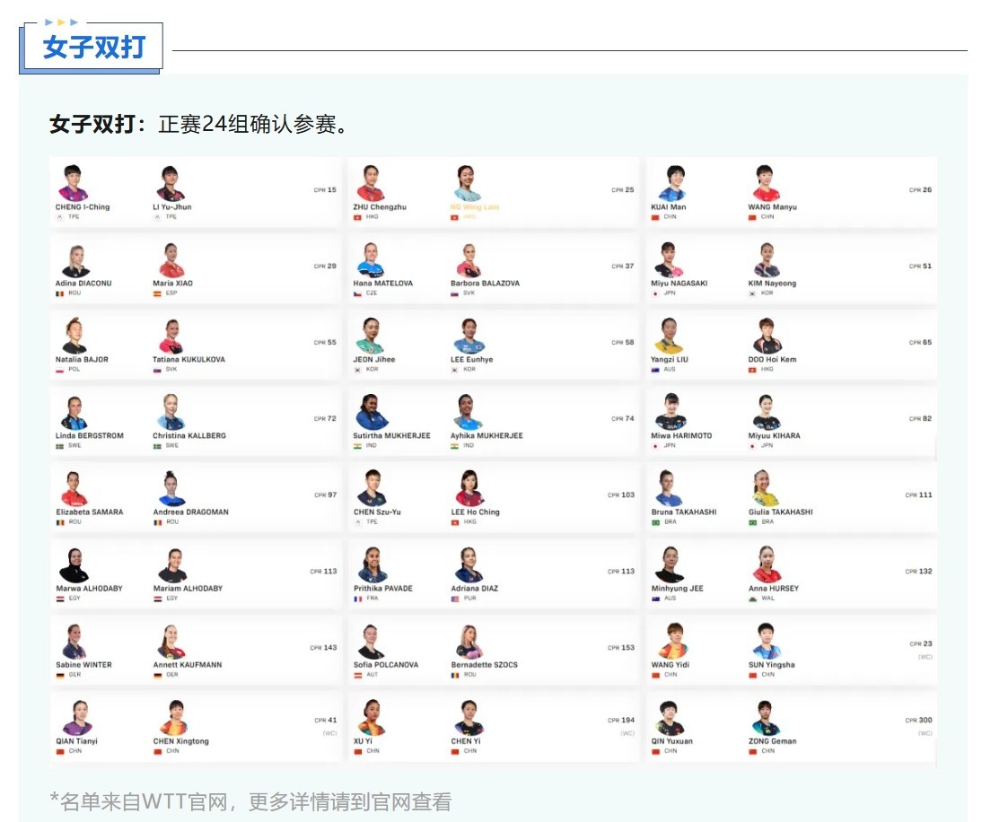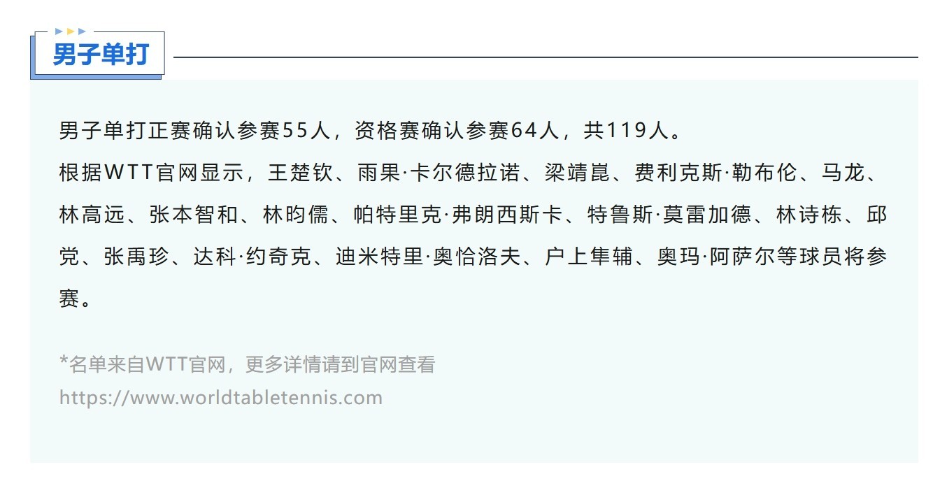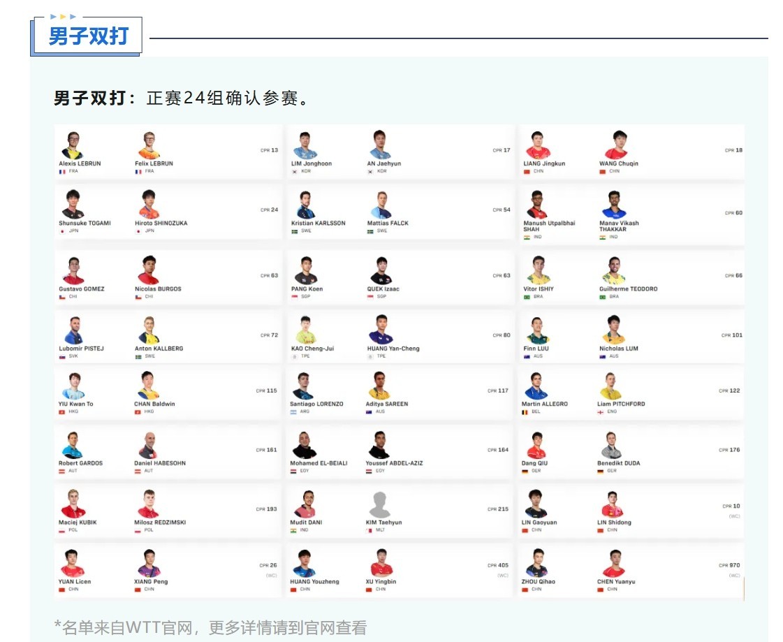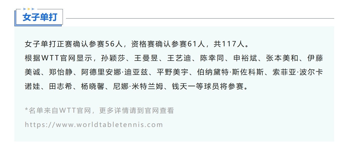 截止9月19日10:00,WTT官网数据显示目前已确定这些球员将参赛????????
