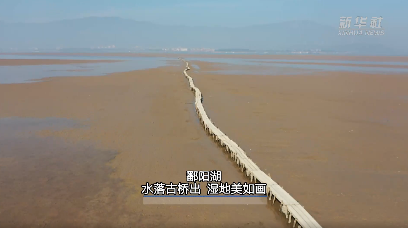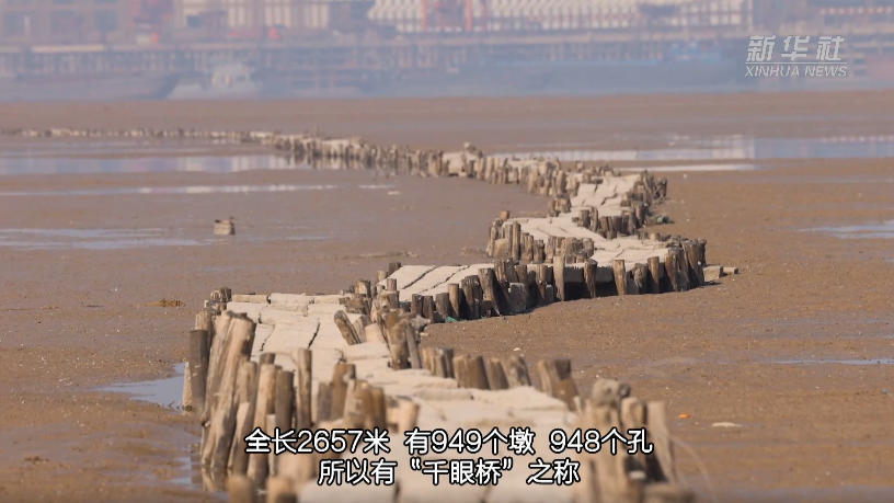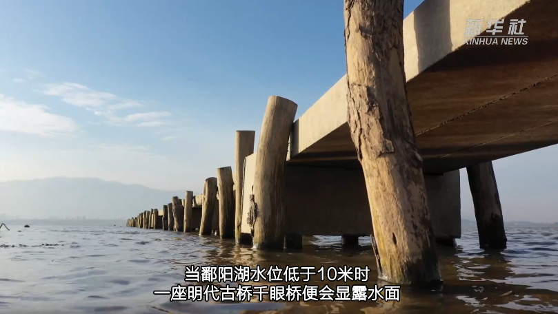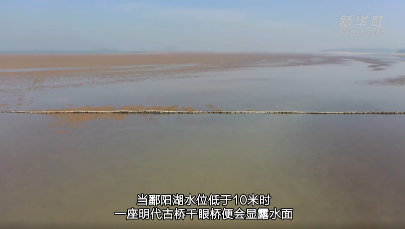 随着鄱阳湖进入枯水期,在江西省都昌县多宝乡蒋公岭附近水域,一座横亘在湖床上的古桥“千眼桥”便会显露水面,一起去看看吧。