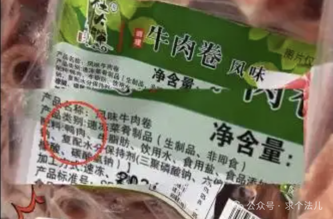 律师表示,刘文祥门店用低价鸭肉冒充高价牛羊肉销售,属于典型的以次充好、消费欺诈行为,同时触犯多部法律法规,构成多重违法。