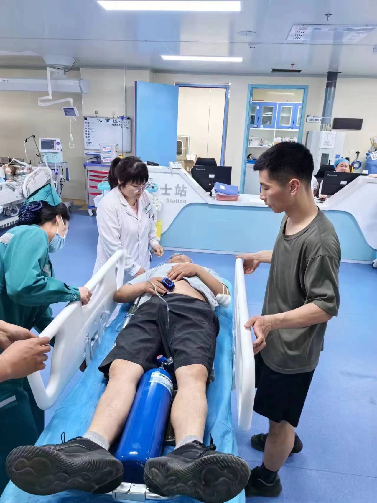 到达医院急诊部门,军医将伤员各项情况告诉医生,医生对我们前期的抢救工作和伤情检测给予了高度评价。