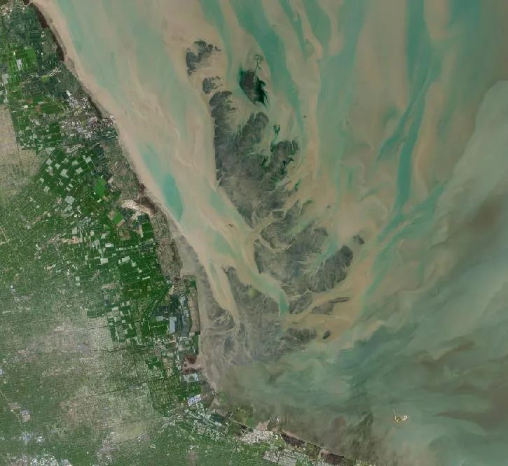 江苏盐城海岸型湿地遥感影像图(数据来源:高分一号,波段组合:R(3)G(2)B(1))