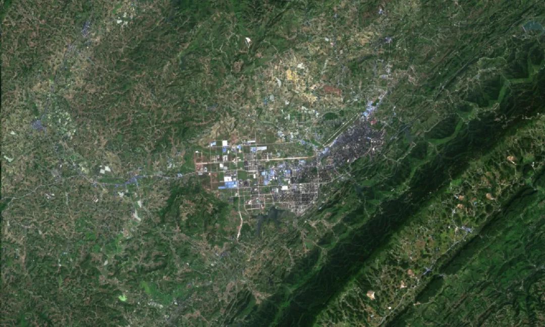 重庆梁平遥感影像图(数据来源:高分一号,波段组合:R(3)G(2)B(1))