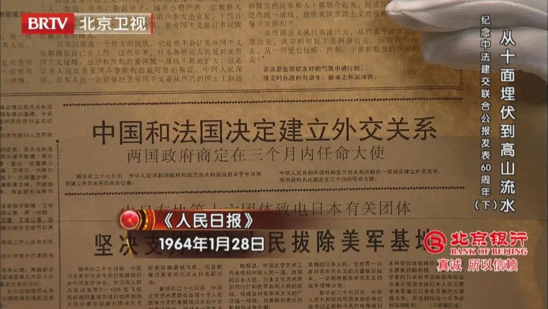 今晚21:05,由北京银行独家冠名、泸州老窖1952特约播映的《档案》继续为您揭秘中法建交始末,敬请关注!