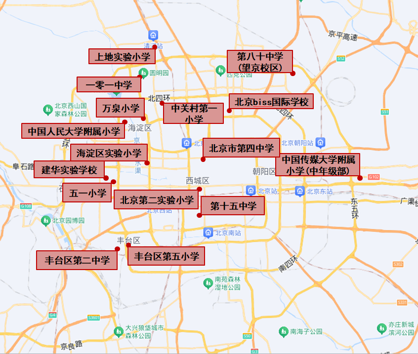 早7时45分-8时15分学生入校高峰时段,东城、西城、朝阳、海淀部分学校集中区域周边路网压力集中。五一小学、实验二小、万泉小学、人大附小等学校周边道路易出现缓行或短时拥堵情况。