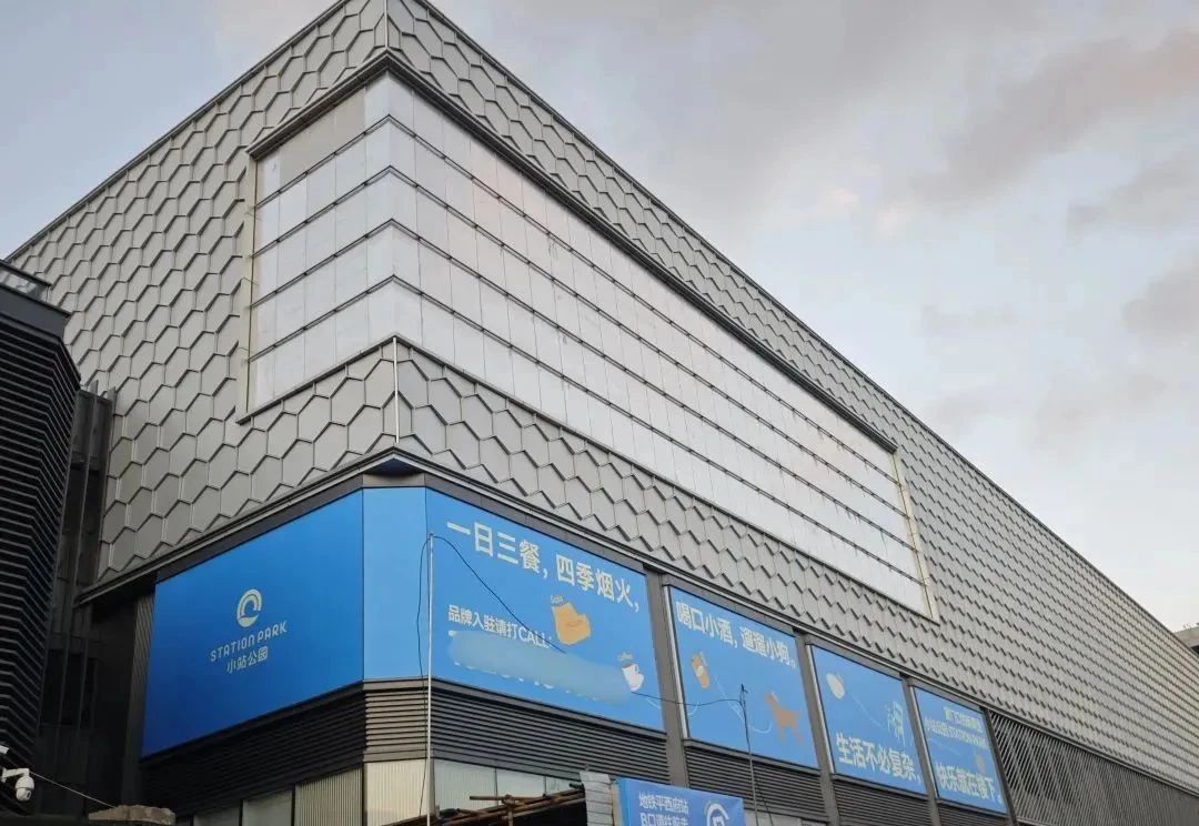 该项目由檀谷商业团队倾力打造,外墙上已张贴出“STATION PARK 小站公园”的标识及招商广告。