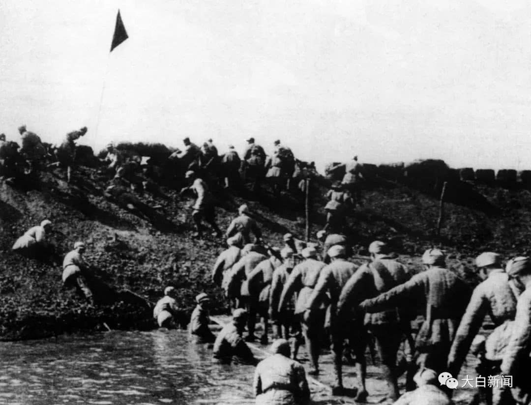 337团3连在连续爆破架桥过河等一系列战斗动作后,突击排越过护城河,仅3分钟,1班战斗组长王玉龙即将第一面红旗插上天津城头。突击队的英雄们一个个从红旗下冲过,“大天津堡垒"被突破。112师和113师均突入了兵力,并开始向纵深发展。随后,151师也在辅助方向突击成功。13时5分,突破了敌第二道防线。